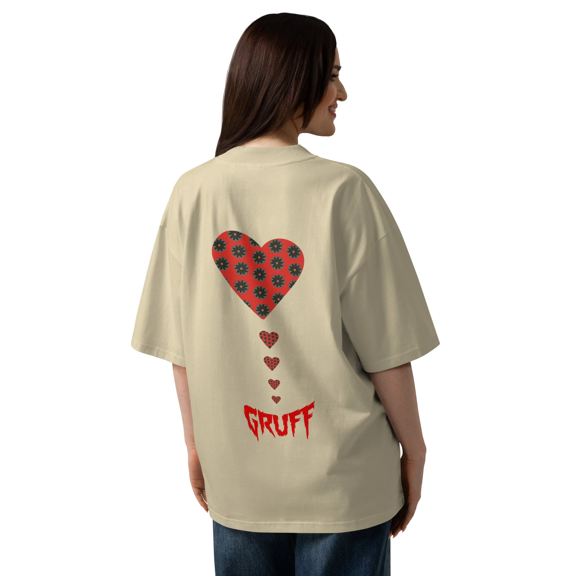 Worn-In Beauty. The Botanical Pulse motif—the daisy heart liquefying into the Gruff logo—is brought to life here through intricate, high-density embroidery. Set against a washed-out, vintage-effect fabric, the design feels like a found artifact. It’s a softer, low-profile take on our signature aesthetic, capturing the moment where high-end design begins to weather and age.